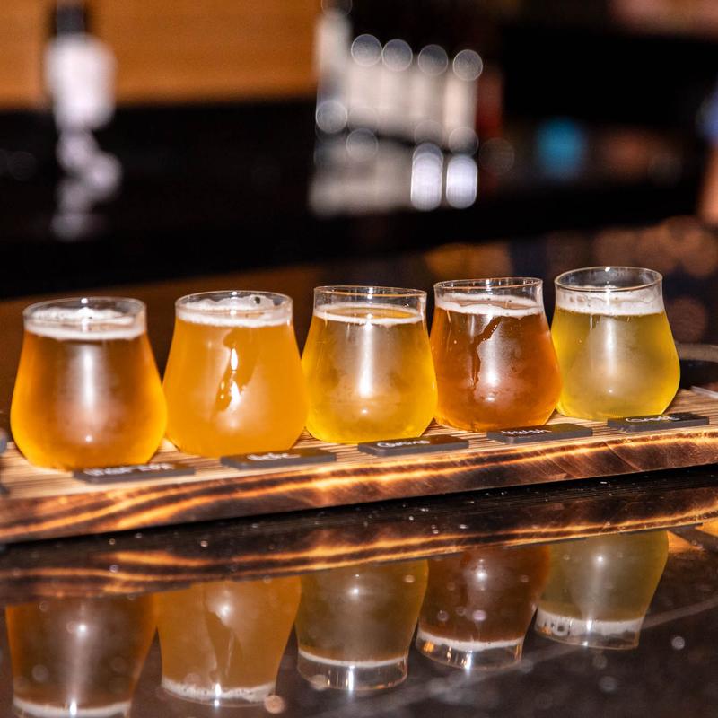Our taproom features 16 beers on tap (all brewed on-site) and most of our brewed beers are available in cans to-go!